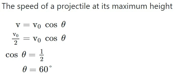 21. The speed of a projectile at its maximum height is half of its initial speed. The angle of projection is: